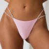 Magical details. Want to turn heads on your next tropical getaway? The Mabe bikini bottoms are made for you. Crafted from premium stretch-tricot swim fabric with a glossy satin finish, they’re cut to a high-leg silhouette with micro thong-back coverage, ideal for minimising tan lines. The delicate double straps are strung with lustrous faux pearls, inspired by natural treasures.