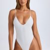 Minimalism with a signature twist. A classic you’ll want to take on every trip, the Santa Monica swimsuit is crafted from premium stretch-jersey swim fabric to a sporty high-cut silhouette with a plunging V-neckline and low open back. It features slender straps that can be adjusted for enhanced support and minimal thong coverage at the back.