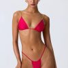 Ruched Thong Bikini Bottoms in Raspberry Pink